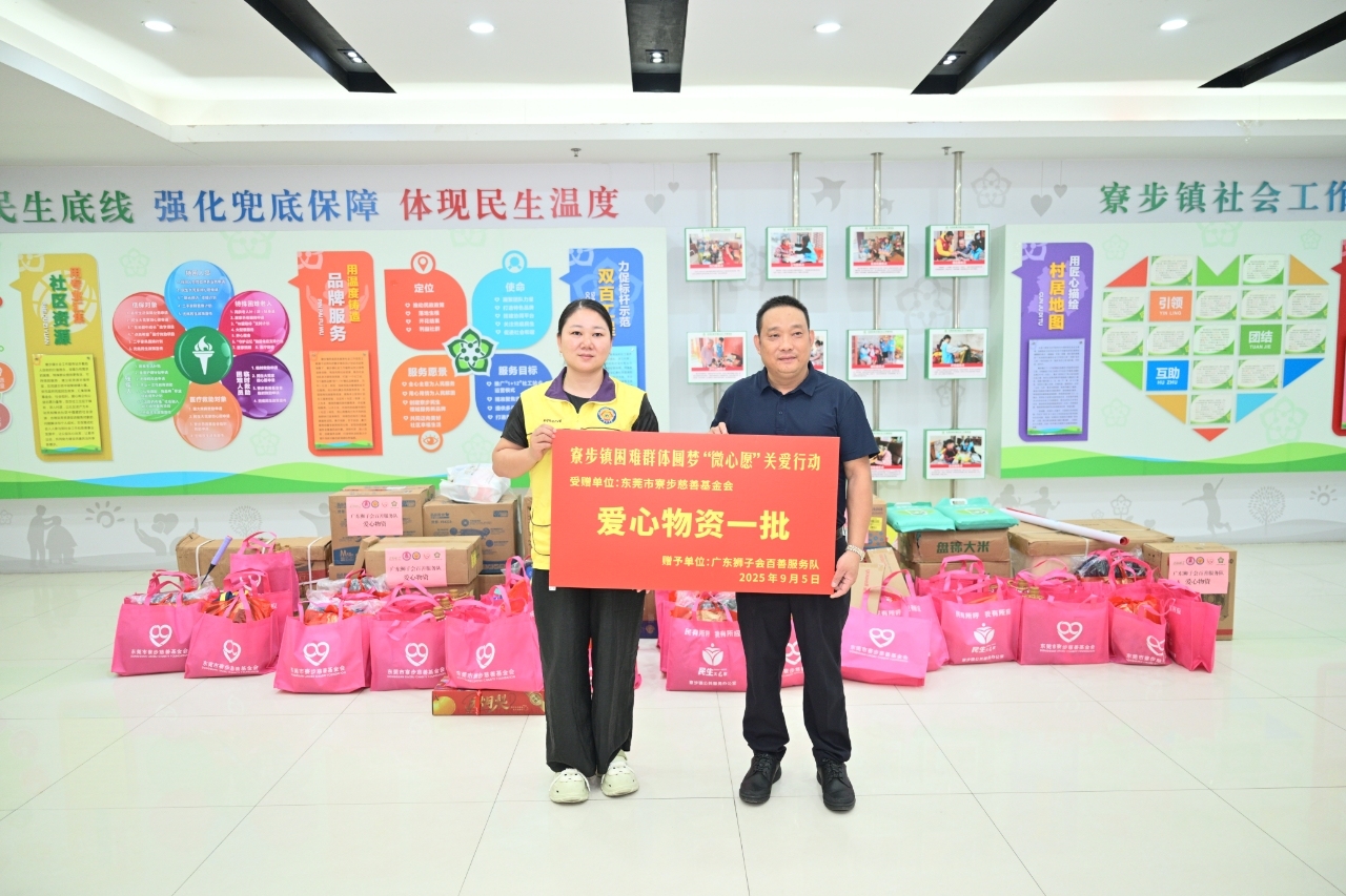 活动现场举行了“微心愿”物资捐赠仪式。在广东狮子会百善服务队、东莞市正阳社会工作服务中心党支部及华南亚太空间的支持下,共向寮步慈善基金会捐赠价值约15000元的爱心物资,涵盖米面油等生活必需品、儿童学习用品和拐杖辅具等,切实回应了困难群众的生活需求与期盼。刘汉彬代表寮步慈善基金会接收了这一批爱心物资。